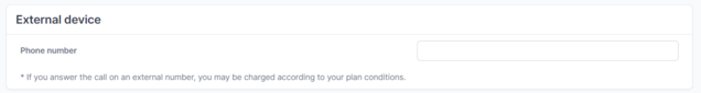If you have selected "External Device" as "Type of device", you must set the phone number and decide which extensions the device should respond to for incoming calls.
