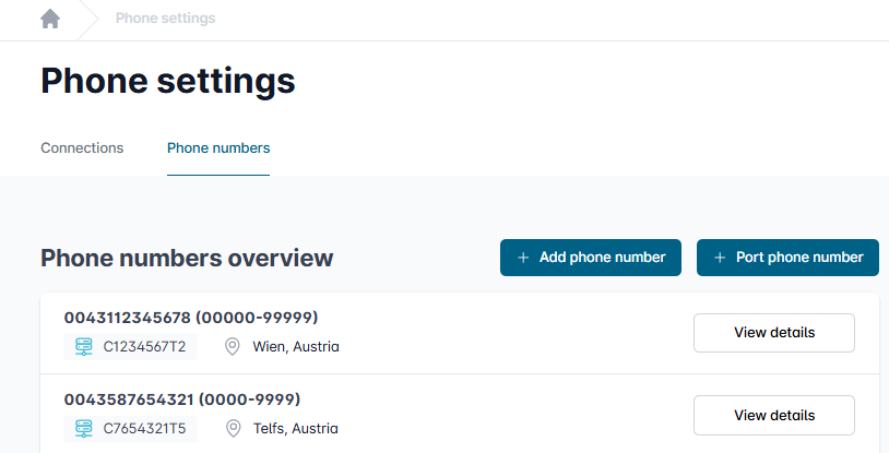 Under “My Products” → “Phone Settings” → “Phone Numbers” you will find an overview of your numbers.