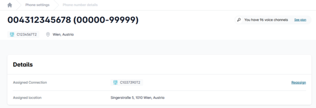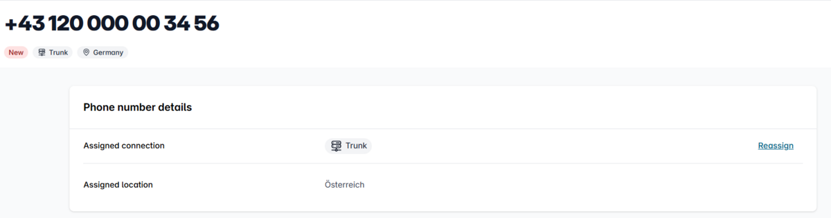 For the number to be used in the Cloud PBX, it must be assigned to it. To do this, click “Reassign” and select “Cloud PBX”.
