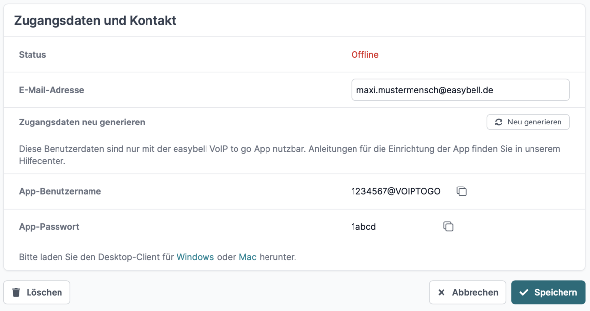 Once you have successfully installed the Easybell Desktop App, please use your access data from step 3 and log in.