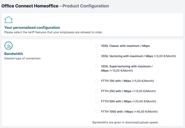 The offer configured in this way will later be available to all employees. Employees can select the maximum bandwidth you have defined as the upper limit (actual availability may vary depending on location).
