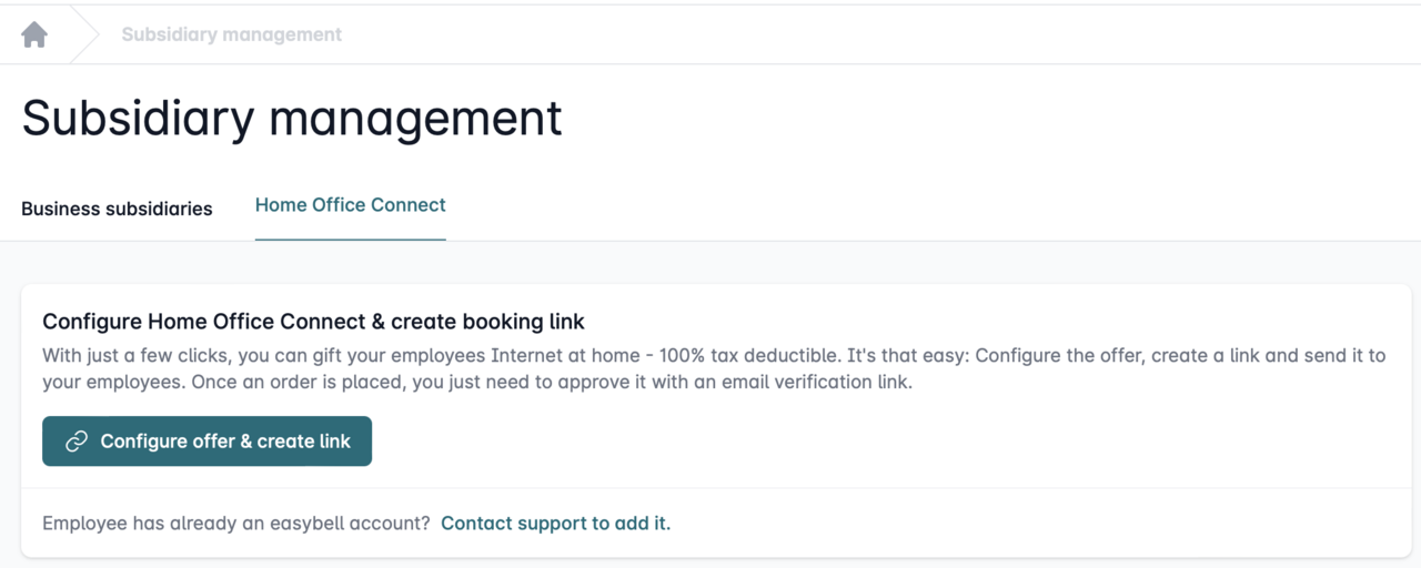 If you are setting up Home Office Connect for the first time, please click on "Configure offer & create link".