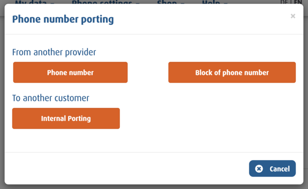 Please confirm the information on number porting and click on "Internal porting" in the next screen.