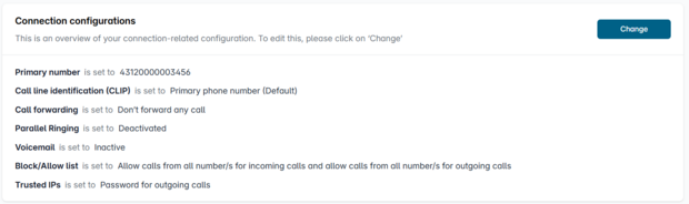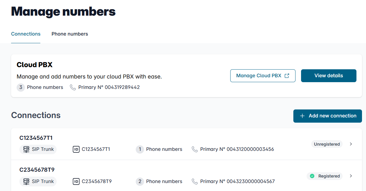 Under "My data" → "Phone settings" you will find an overview of your SIP trunks under "Connections".