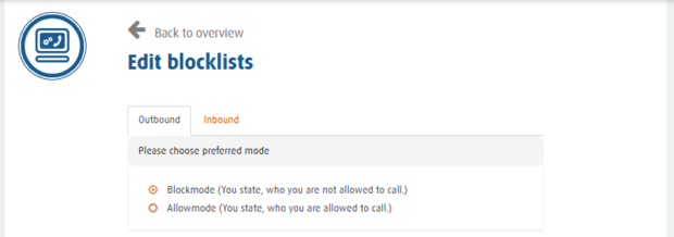 In blockmode, each phone number or area code or number range to be blocked is specified individually. This mode is therefore useful if you only want to block a few call destinations or sources.